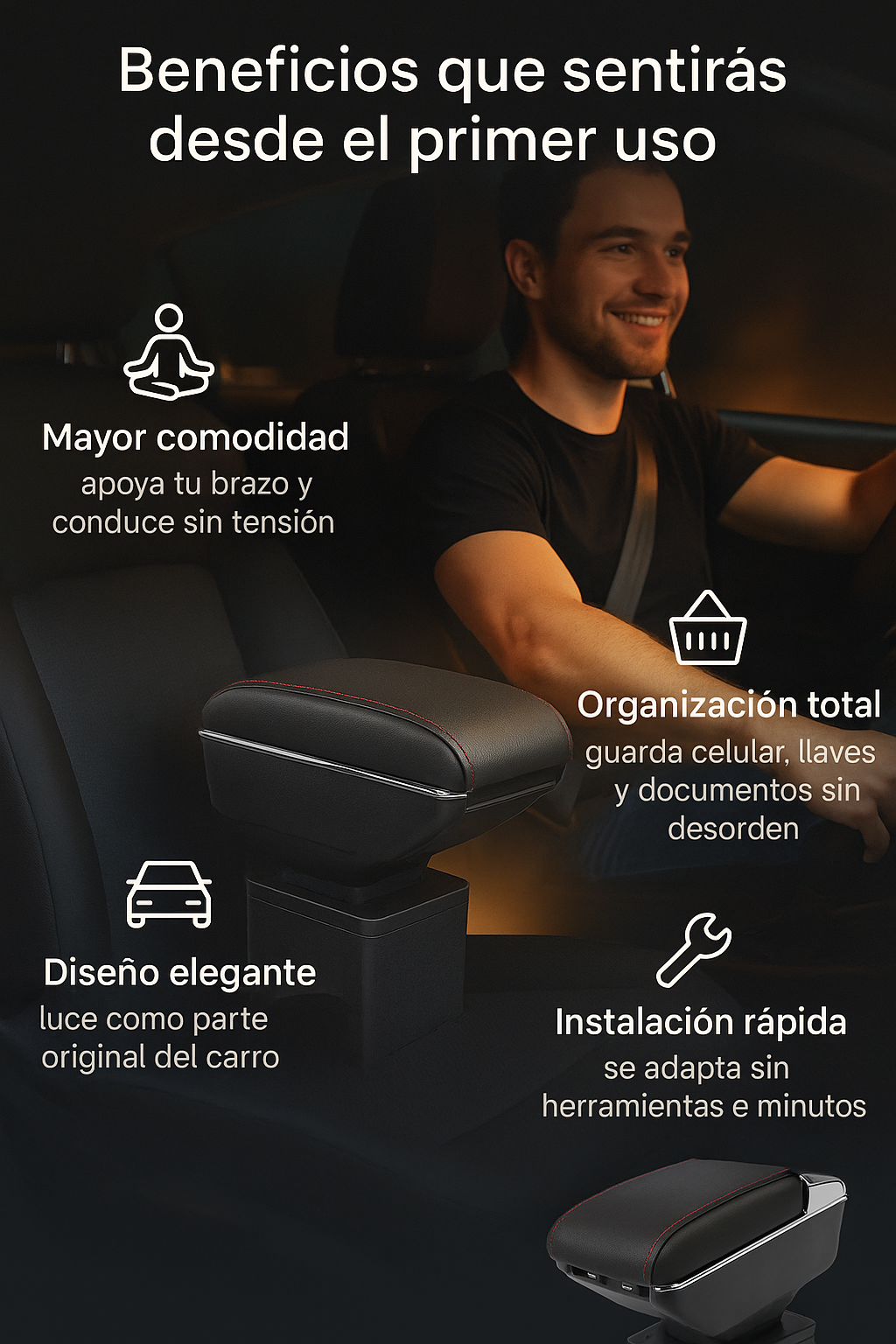 Antes tenía todo tirado entre los asientos. Ahora todo está a la mano y manejo relajado. ¡Se siente de lujo!